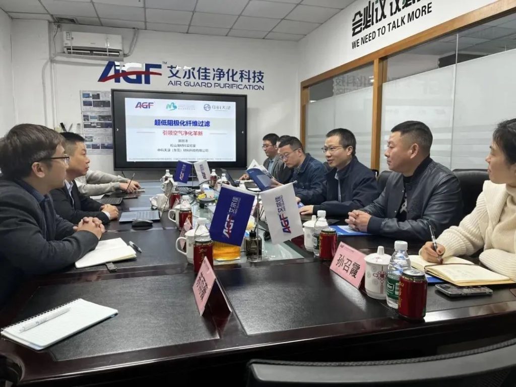 セミナーセッションでは、双方の技術チームが「高効率低抵抗ろ過材料の研究開発」、「自動車スマートキャビンにおける空気品質管理」、「工業用浄化システムソリューション」など最先端のテーマについて詳細な議論を行いました。松山湖チームは、新しい高効率で低抵抗の空気ろ過材料の画期的な研究結果を実証し、艾爾佳は自動車のキャビン、鉄道輸送、産業環境などのシナリオで蓄積された産業応用データを共有しました。特に抗菌・抗ウイルス研究開発の分野では、高効率、低抵抗の静電吸着ろ過技術について両者は重要な合意に達しました。
