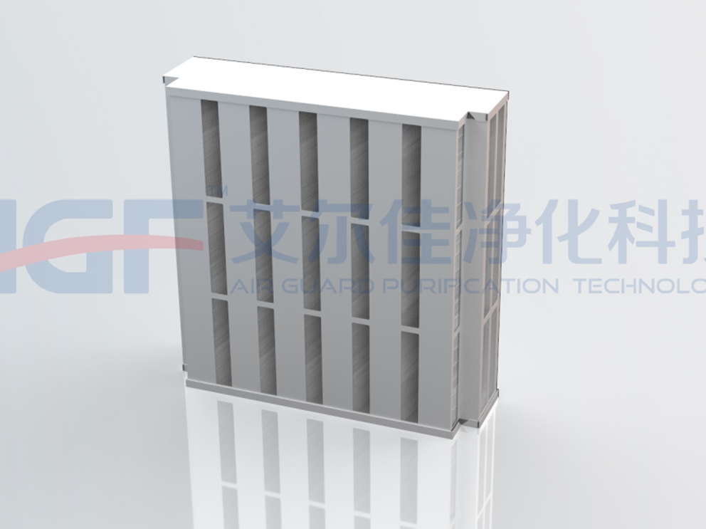 構造: 隔壁付きフィルター内部にアルミ箔を挿入。波浪成型加工を施し、樹脂注入プロセスにより気密密封を保証。完成品はUL94 V0級難燃性要求を満たし、設計基準:EN 779:2012